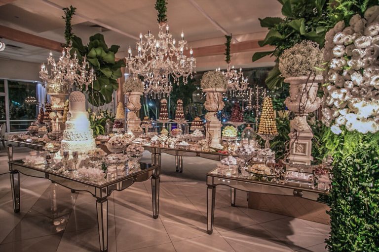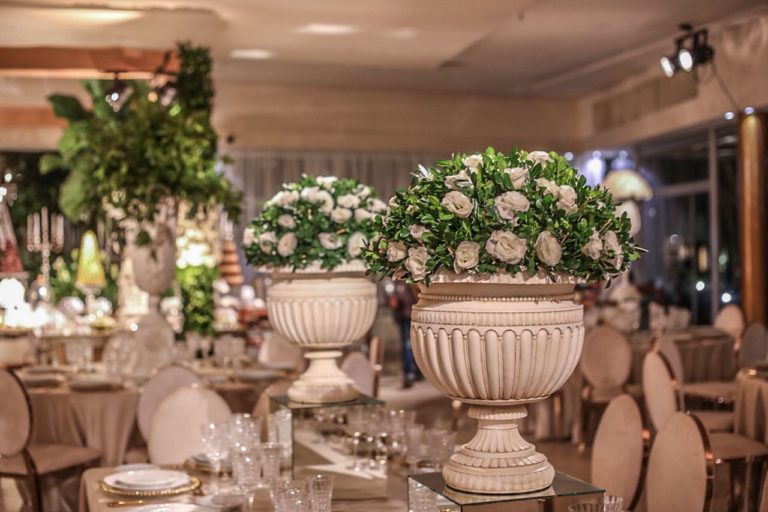 Como parte de la propuesta, el efecto mármol antiguo constituyó su presencia en bases talladas siguiendo lo más romántico del estilo francés en diferentes bases y complementos florales así como detalles en las puestas Gourmet y bombonerie.