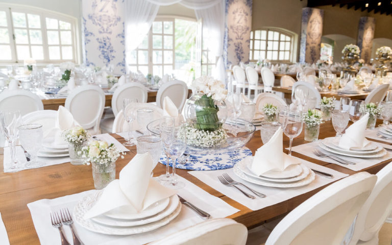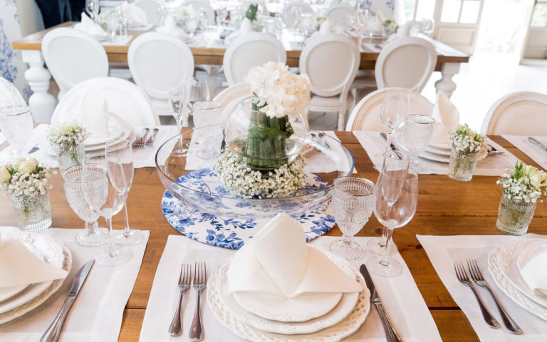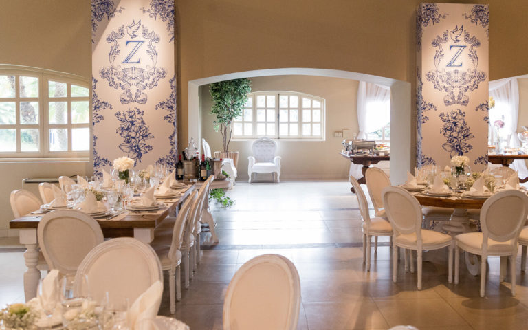 Con la técnica del Toile D’ Jouy diseñamos una estampa exclusiva para el bautismo de Zahir. Con off-white y el azul lavado en la paleta de tonos, aprovehamos la luz natural para un Brunch con toda una línea de muebles y vajillas Provence.